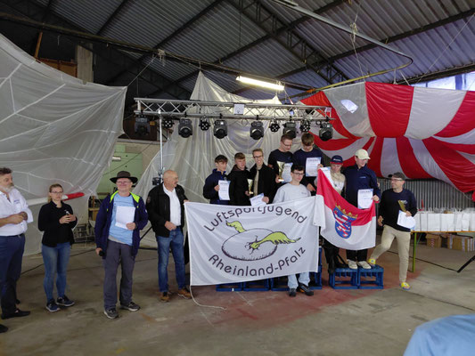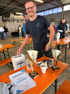 Am nächsten Morgen war dann die Siegerehrung, und die hatte es in sich, denn Timo hat ordentlich abgeräumt. Nach einer Teamwertung, die das Team Rheinland – Pfalz mit dem 1. Platz abräumte wurde uns unser gutes Gefühl vom Vortag nicht genommen. Aber es wurde noch besser, denn Timo belegt in der Einzelwertung den 2. Platz und dass bei seinem ersten Landes- sowie Bundesjugendvergleichsfliegen. Somit hat sich unsere ASK 18 wieder einmal als ein ideales Schulungsflugzeug bewiesen. Eine wahnsinnige Leistung hat er da erbracht, worauf die ganze SFG Wershofen sehr stolz sein kann, und dies auch ist.